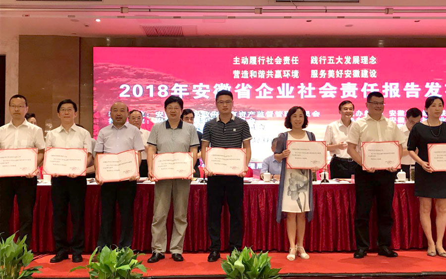 7月26日上午,由省国资委、发改委、经信委、工经联等单位联合主办的2018年安徽省企业社会责任报告发布会在合肥召开,全省101家企业发布了2017年度社会责任报告。在发布会上,《best365足球官网2017年社会责任报告》被省企业社会责任体系建设推进委员会授予“2017年度安徽省佳社会责任报告”荣誉称号,这是公司第二次获此殊荣,标志着公司社会责任工作再上新台阶。股份公司董事、董事会秘书吴尚义代表best365足球官网在会上作了交流发言。
