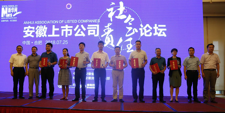 7月25日下午,由新华网、安徽证监局、扶贫办指导,新华网安徽分公司与安徽上市公司协会共同主办的安徽上市公司社会责任论坛在合肥隆重召开,会议表彰了批在“安徽上市公司扶贫在行动”活动中成果丰硕的秀上市公司,其中best365足球官网等8家公司由于在履行社会责任工作中表现积,成绩突出,被主办单位授予安徽上市公司履行社会责任“贡献奖”。